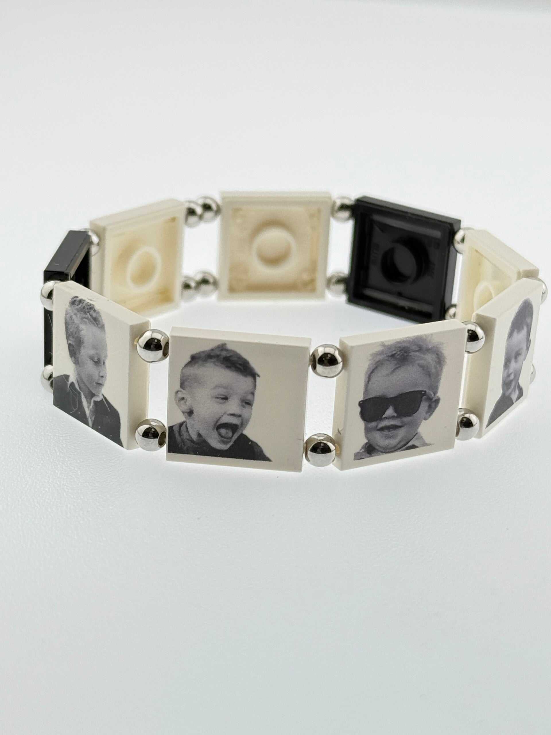 Le bracelet de vos amours — 100% personnalisable, fabriqué à la main en France avec de vraies briques LEGO®. Choisissez la couleur de vos briques et la photo de vos enfants, petits-enfants, animaux... Un cadeau unique et inoubliable qui vient du cœur ❤️