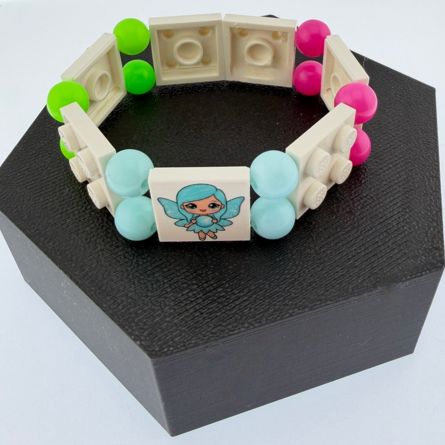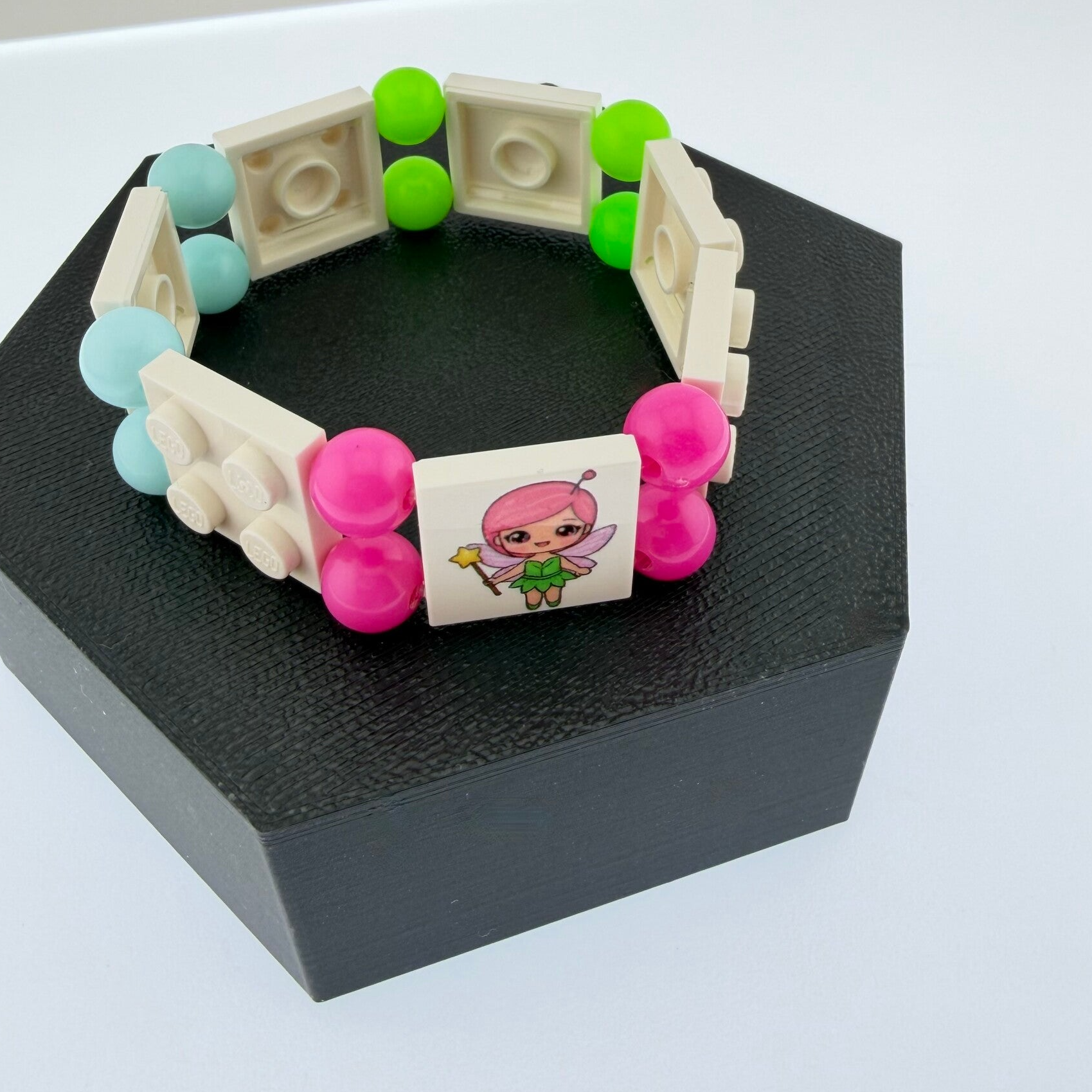 Bracelet en brique Lego les fées. Un petit bijou magique pour les petites filles qui rêvent de voler avec la baguette magique